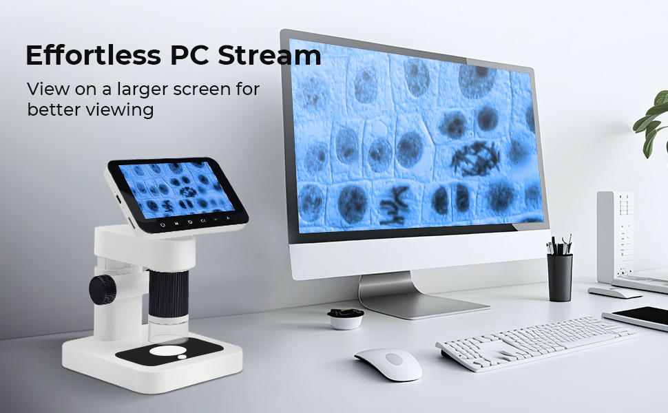 이 현미경은 컴퓨터에 연결할 수 있어 이미지를 더 큰 화면에 표시하여 실시간으로 볼 수 있습니다. 부모와 아이들이 함께 미세 세계를 탐험하기에 완벽하며, 교실에서 모두가 동시에 관찰하고 배울 수 있는 데모에도 이상적입니다.